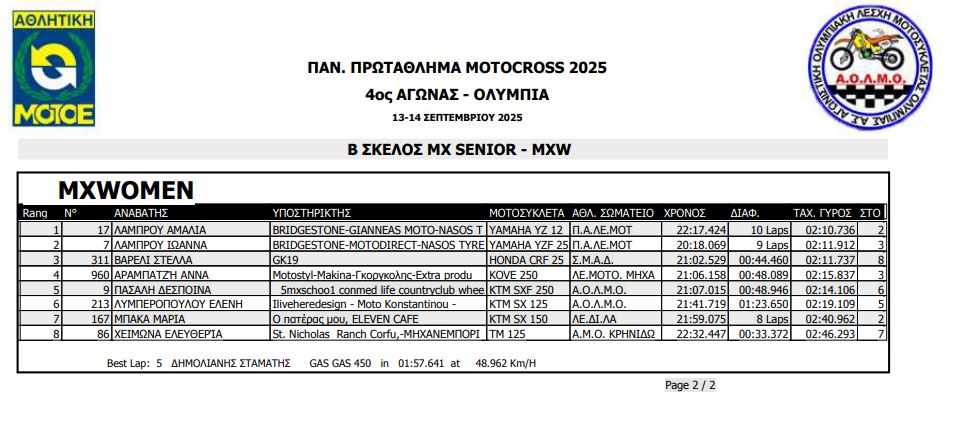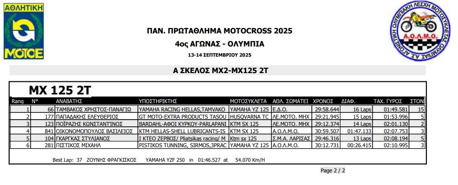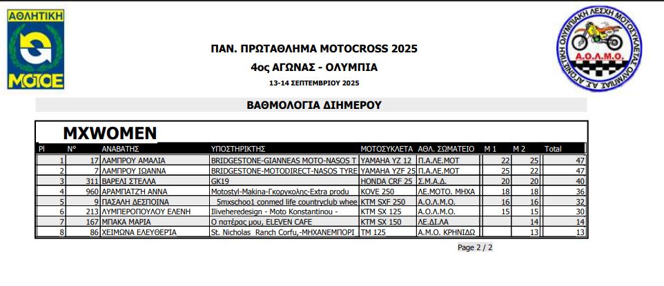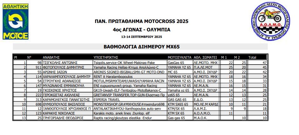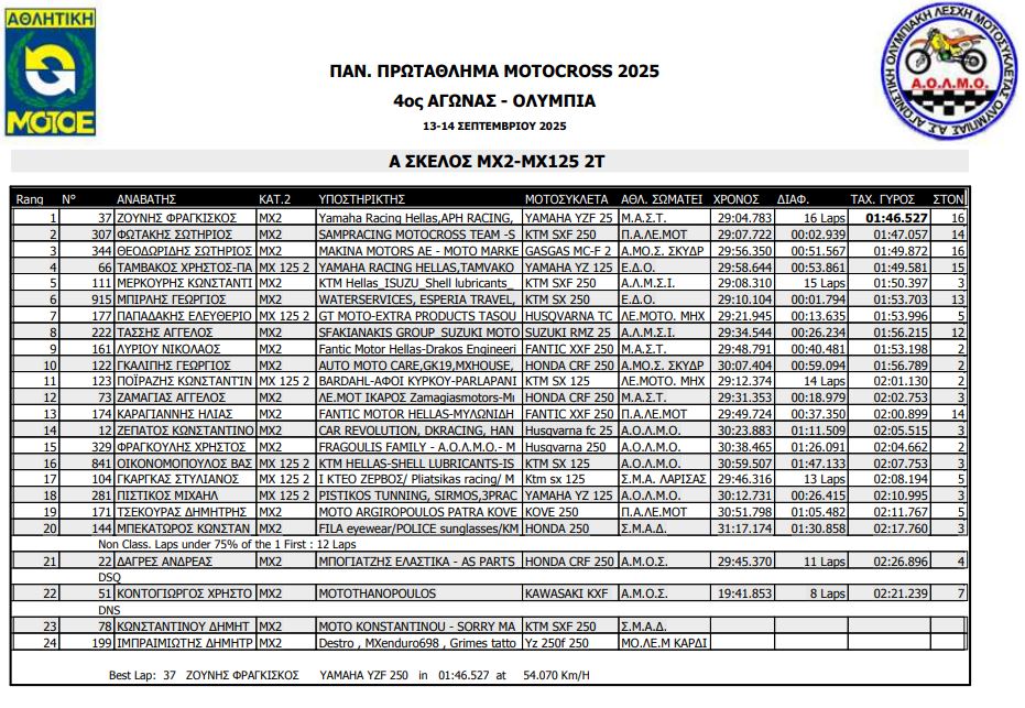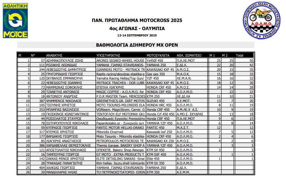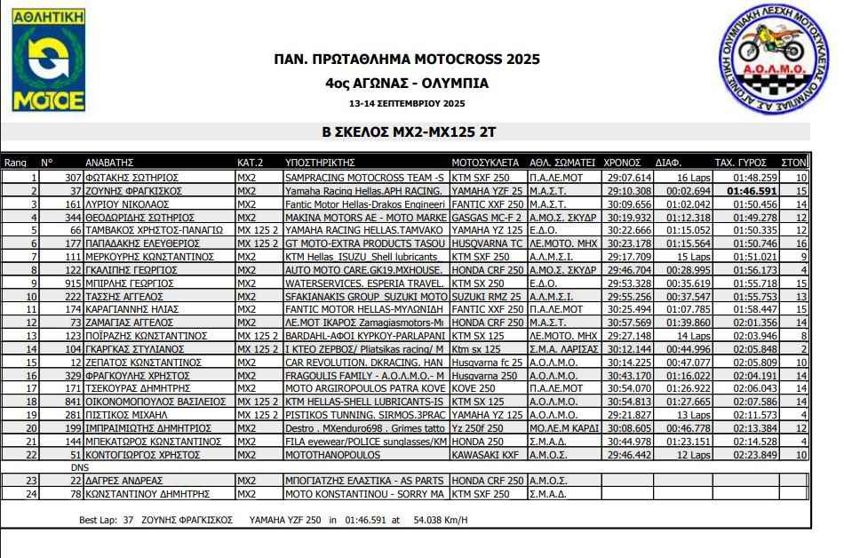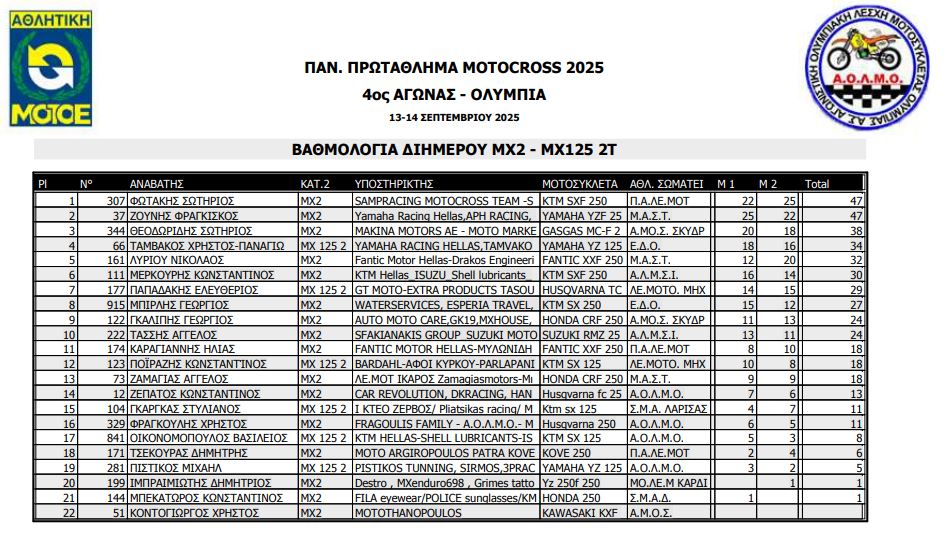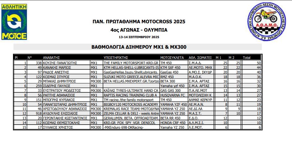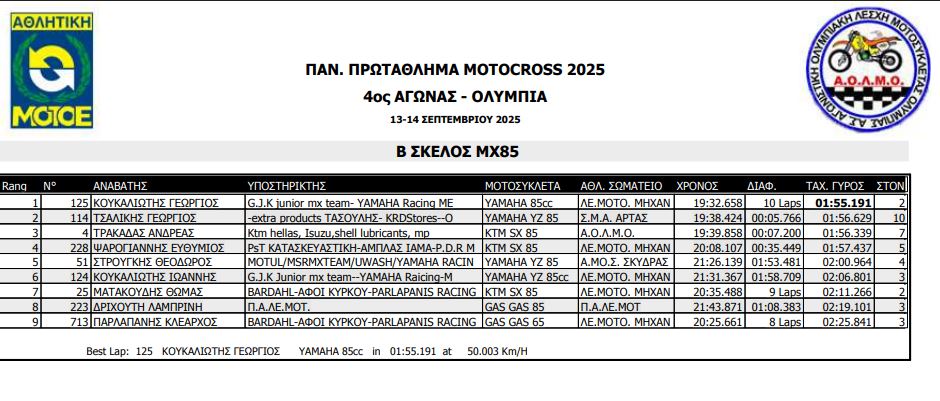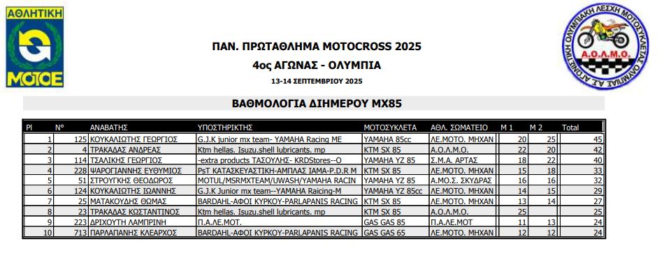 ΑΠΟΤΕΛΕΣΜΑΤΑ 4ΟΥ ΓΥΡΟΥ ΠΑΝΕΛΛΗΝΙΟΥ ΠΡΩΤΑΘΛΗΜΑΤΟΣ MOTOCROSS 2025 ΑΡΧ.ΟΛΥΜΠΙΑ
