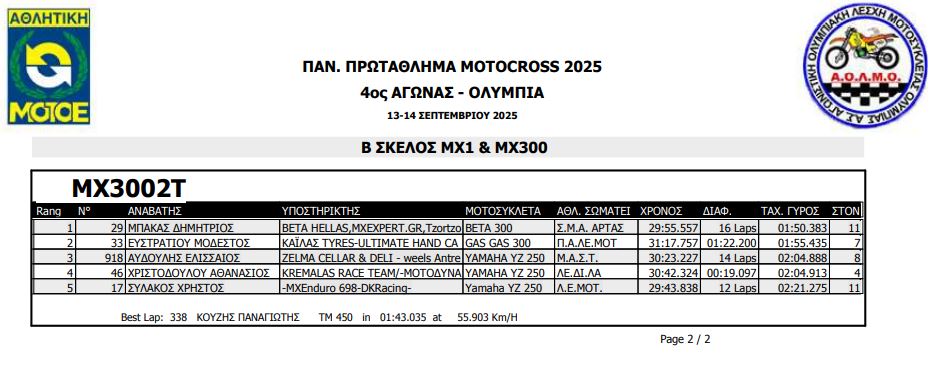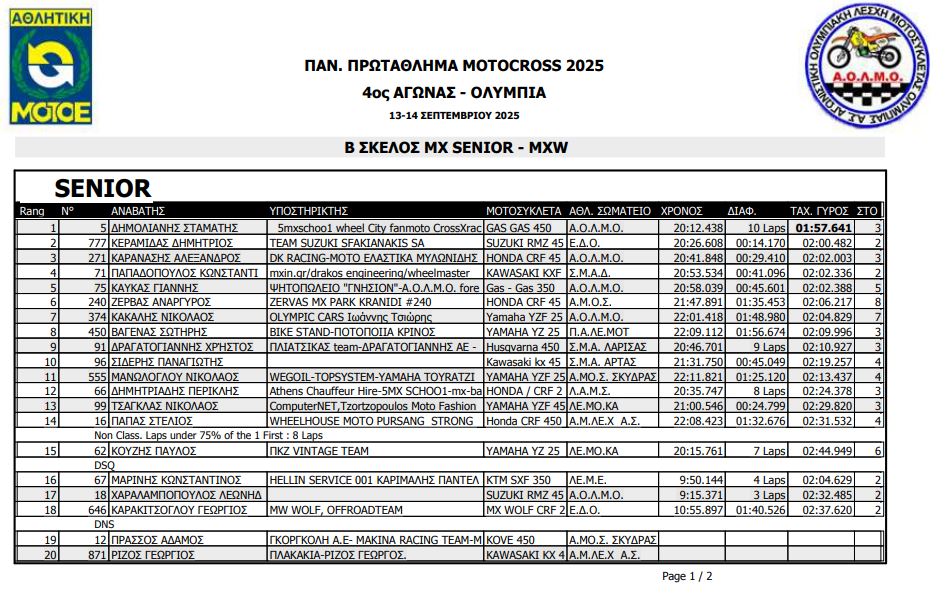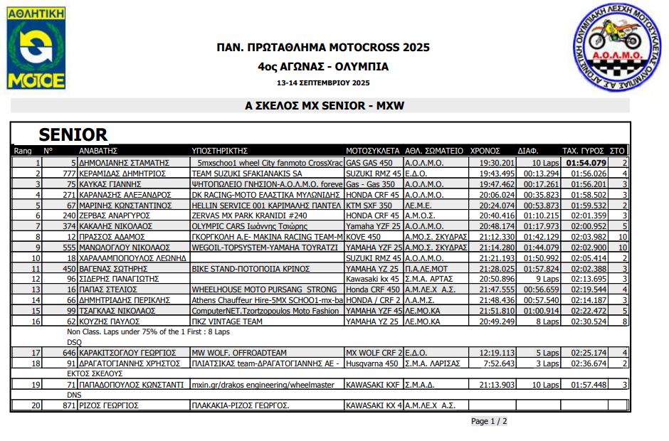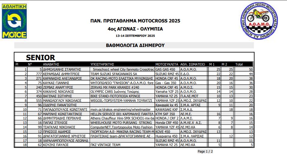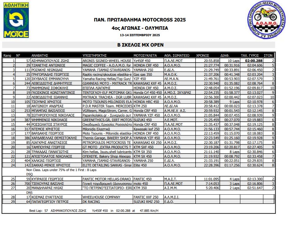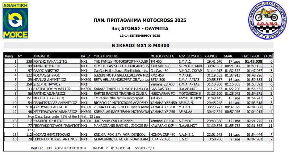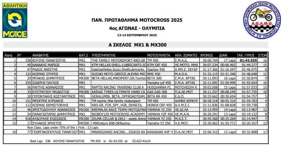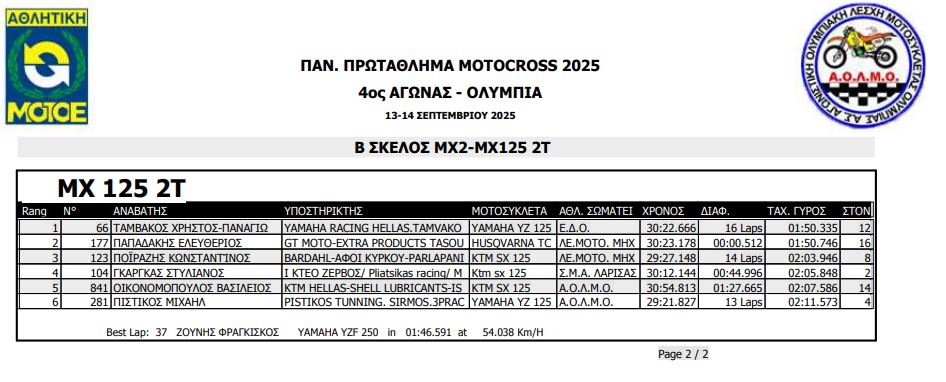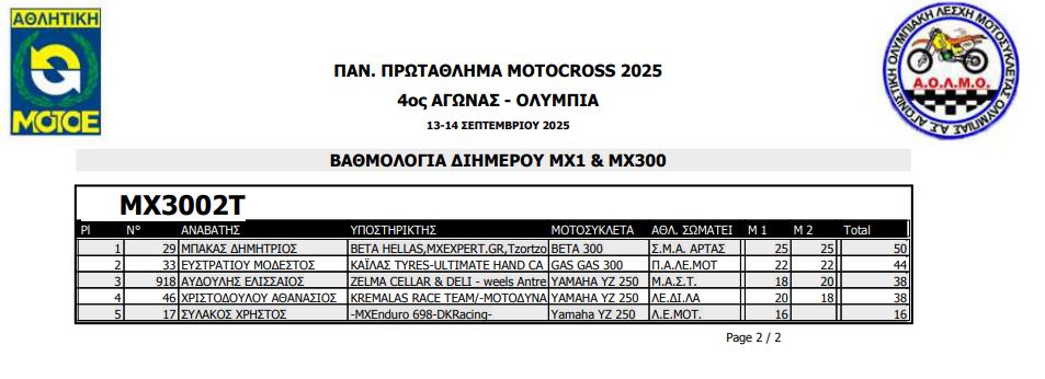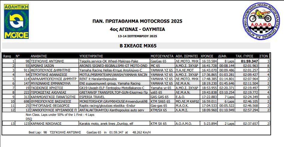 ΑΠΟΤΕΛΕΣΜΑΤΑ 4ΟΥ ΓΥΡΟΥ ΠΑΝΕΛΛΗΝΙΟΥ ΠΡΩΤΑΘΛΗΜΑΤΟΣ MOTOCROSS 2025 ΑΡΧ.ΟΛΥΜΠΙΑ
