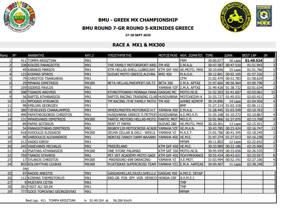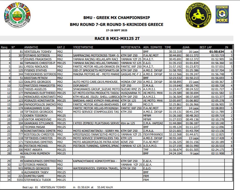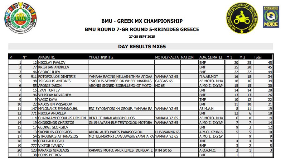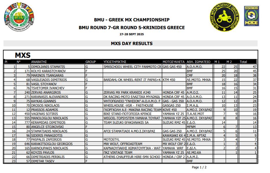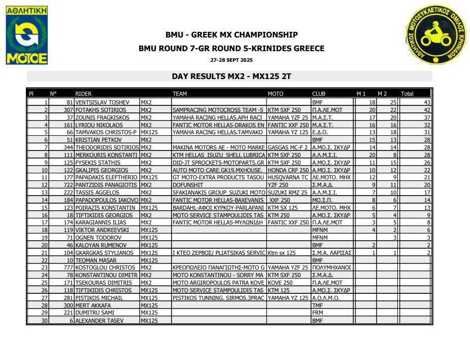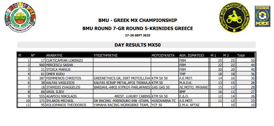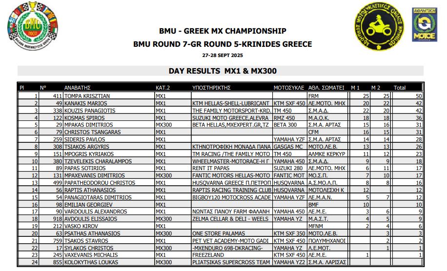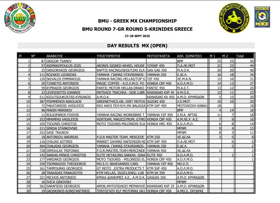 ΑΠΟΤΕΛΕΣΜΑΤΑ 5ΟΥ ΓΥΡΟΥ ΠΑΝΕΛΛΗΝΙΟΥ ΠΡΩΤΑΘΛΗΜΑΤΟΣ MOTOCROSS 2025 ΚΡΗΝΙΔΕΣ
