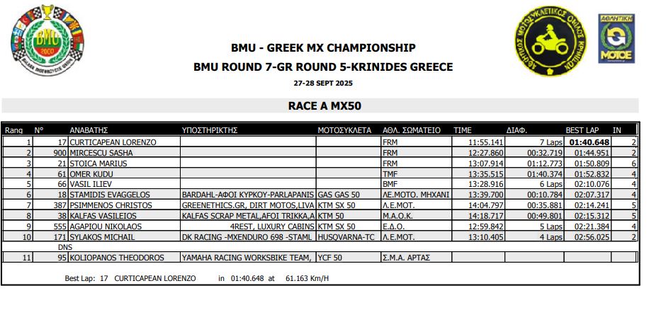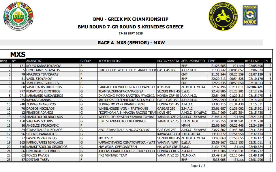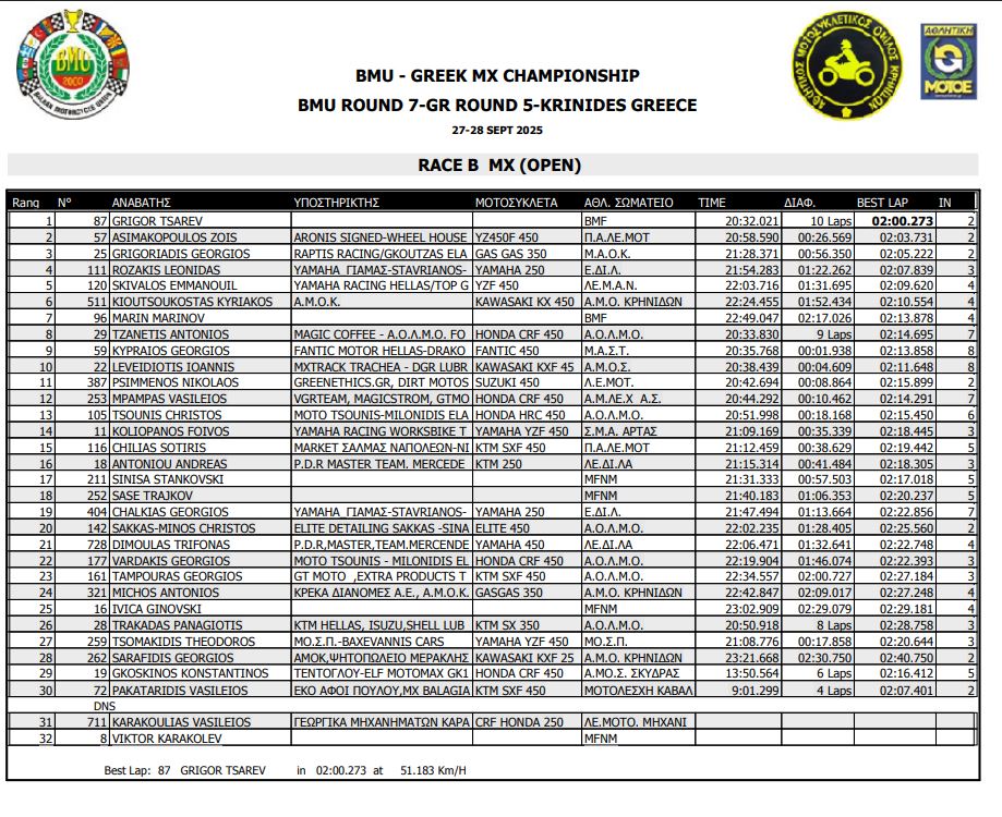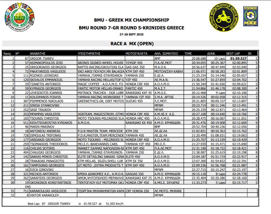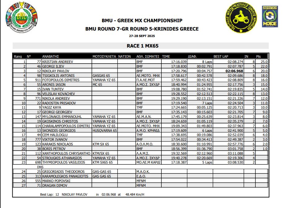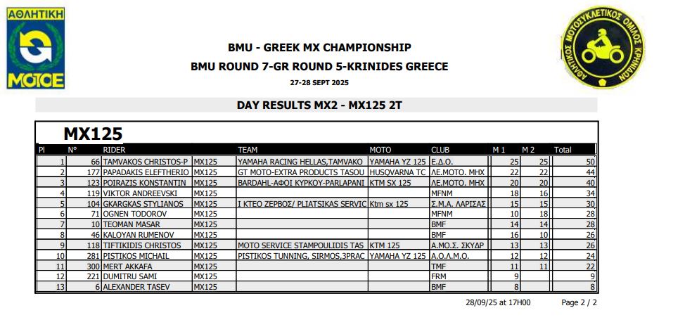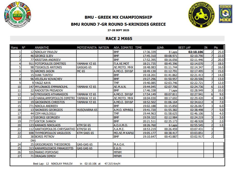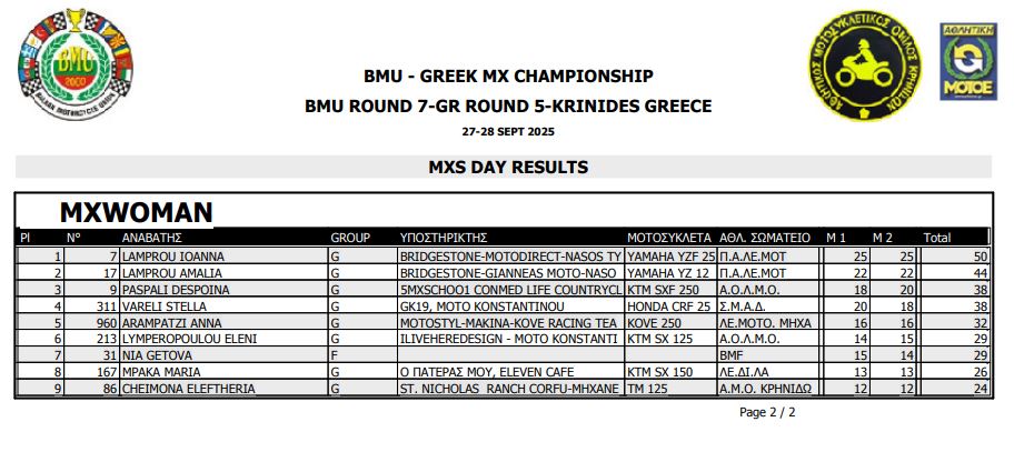 ΑΠΟΤΕΛΕΣΜΑΤΑ 5ΟΥ ΓΥΡΟΥ ΠΑΝΕΛΛΗΝΙΟΥ ΠΡΩΤΑΘΛΗΜΑΤΟΣ MOTOCROSS 2025 ΚΡΗΝΙΔΕΣ
