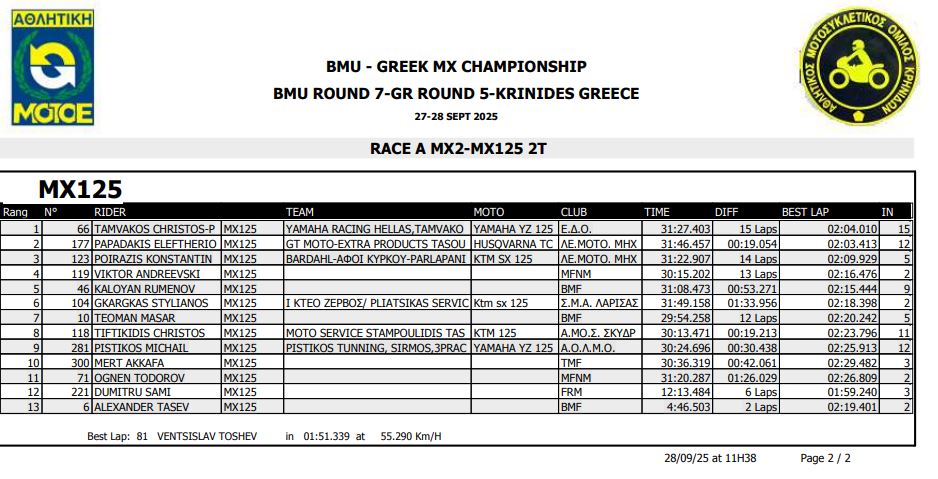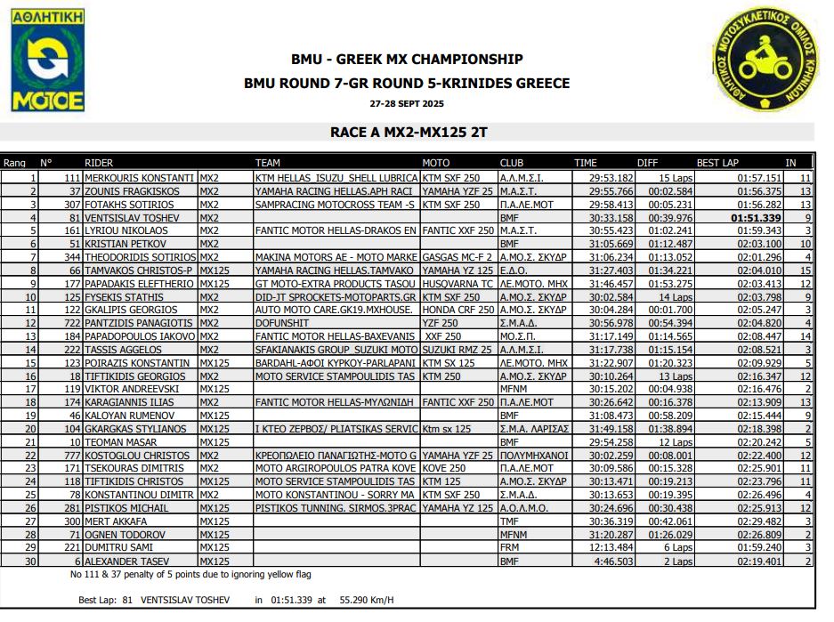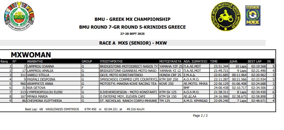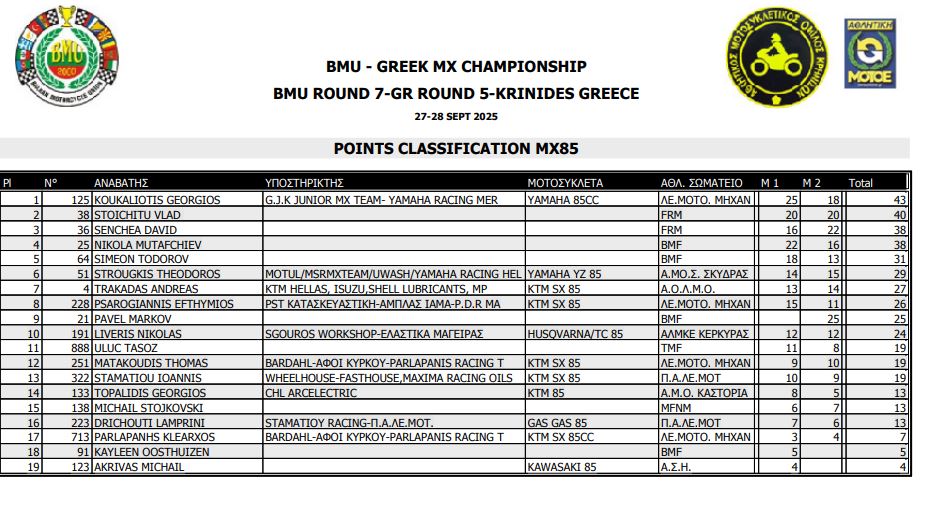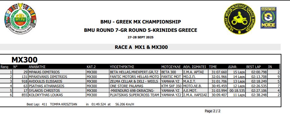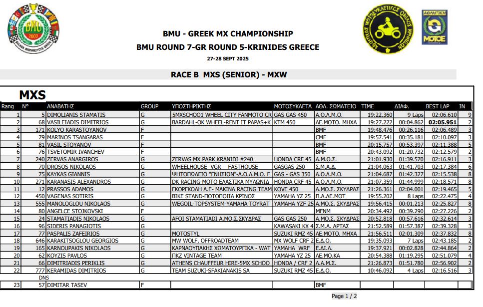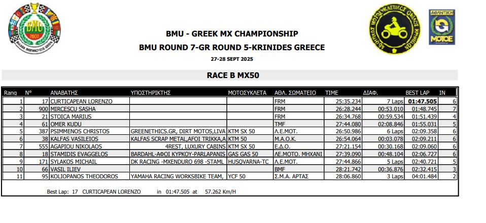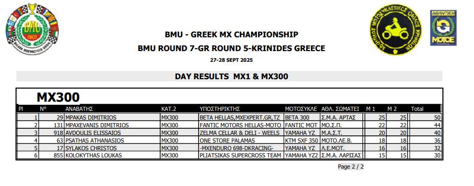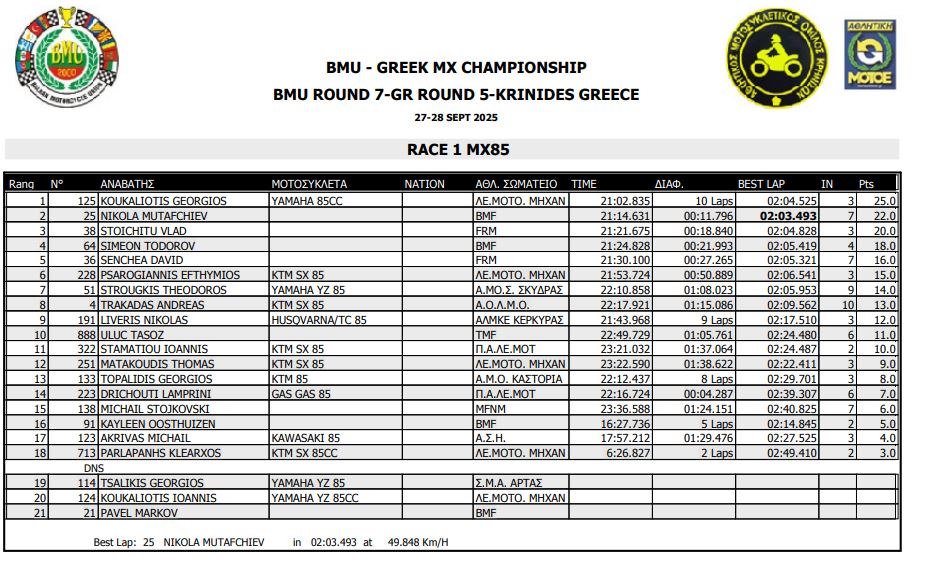 ΑΠΟΤΕΛΕΣΜΑΤΑ 5ΟΥ ΓΥΡΟΥ ΠΑΝΕΛΛΗΝΙΟΥ ΠΡΩΤΑΘΛΗΜΑΤΟΣ MOTOCROSS 2025 ΚΡΗΝΙΔΕΣ