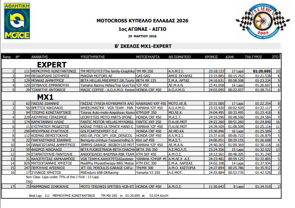 Aποτελέσματα κατηγορίας MX1 – EXPERT